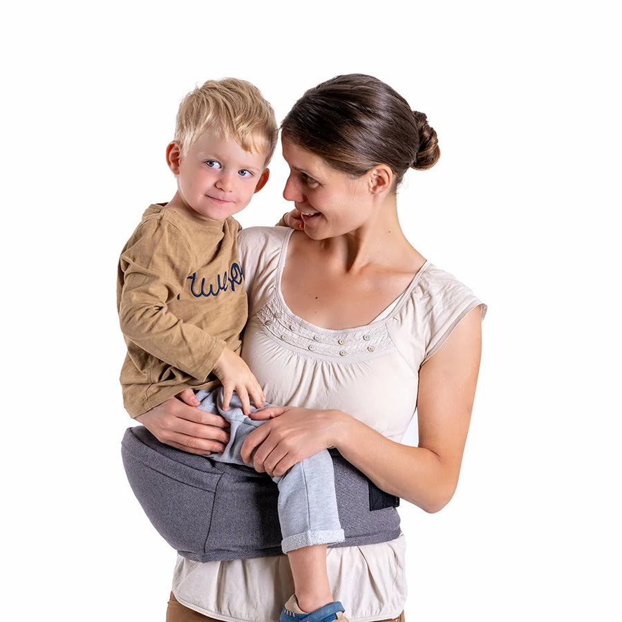 - Csípőn hordozás – kiegyensúlyozott teherelosztás, komfortos testtartás